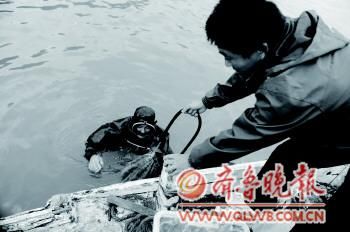 現(xiàn)場:背負50多斤潛水設(shè)備入海